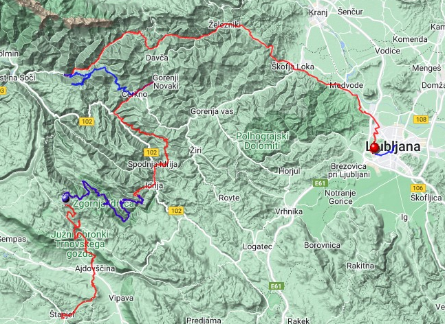 Po enem tednu sva se ponovno lotila kolesarjenja. Tokraten cilj je bilo Cerkljansko in Idrijsko pogorje. Tu s hrano in prenočiščem ne bi smelo biti težav, če bi le izbrala primerne dni v tednu. Planinske koče v sredogorju so namreč pogosto odprte le nekaj dni na teden. Šotora zato nisva vzela s seboj, sva pa bolj podrobno načrtovala pot.