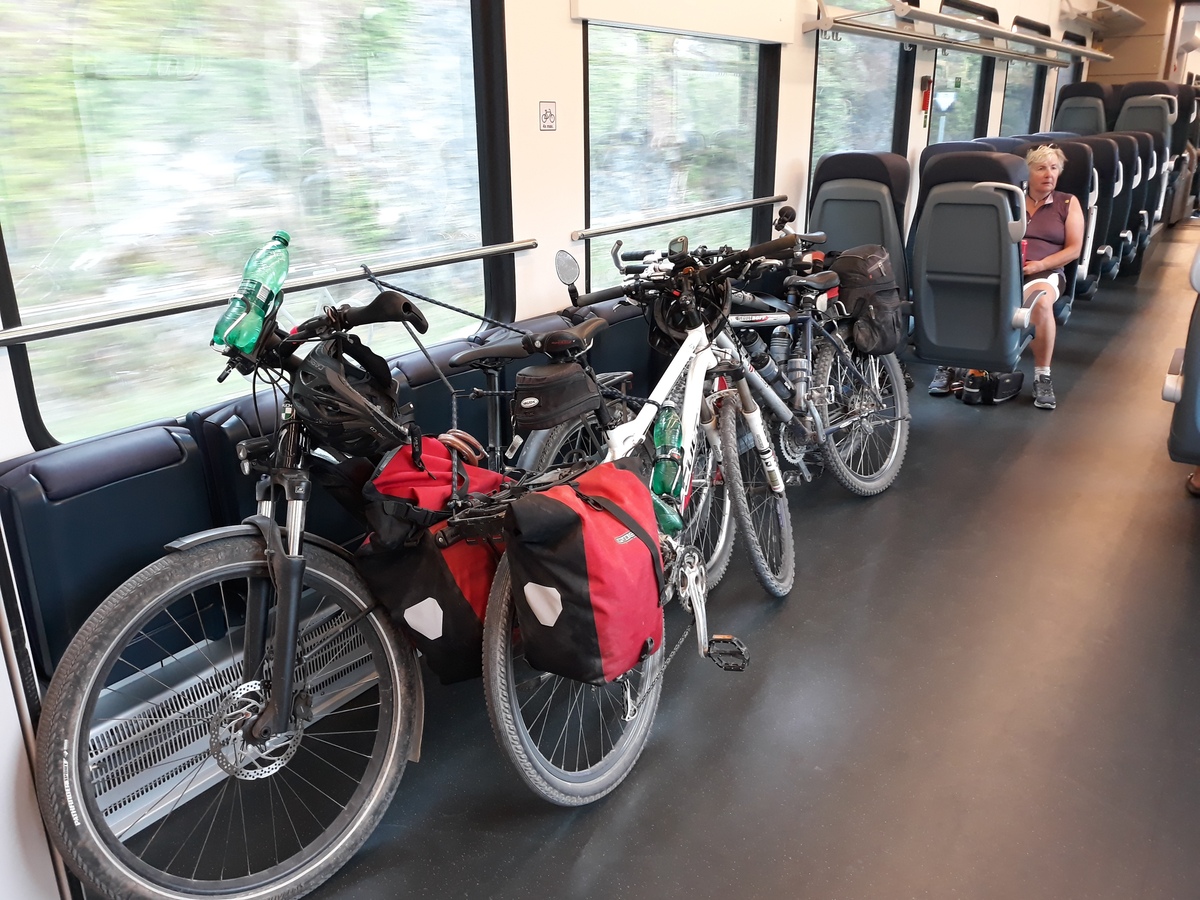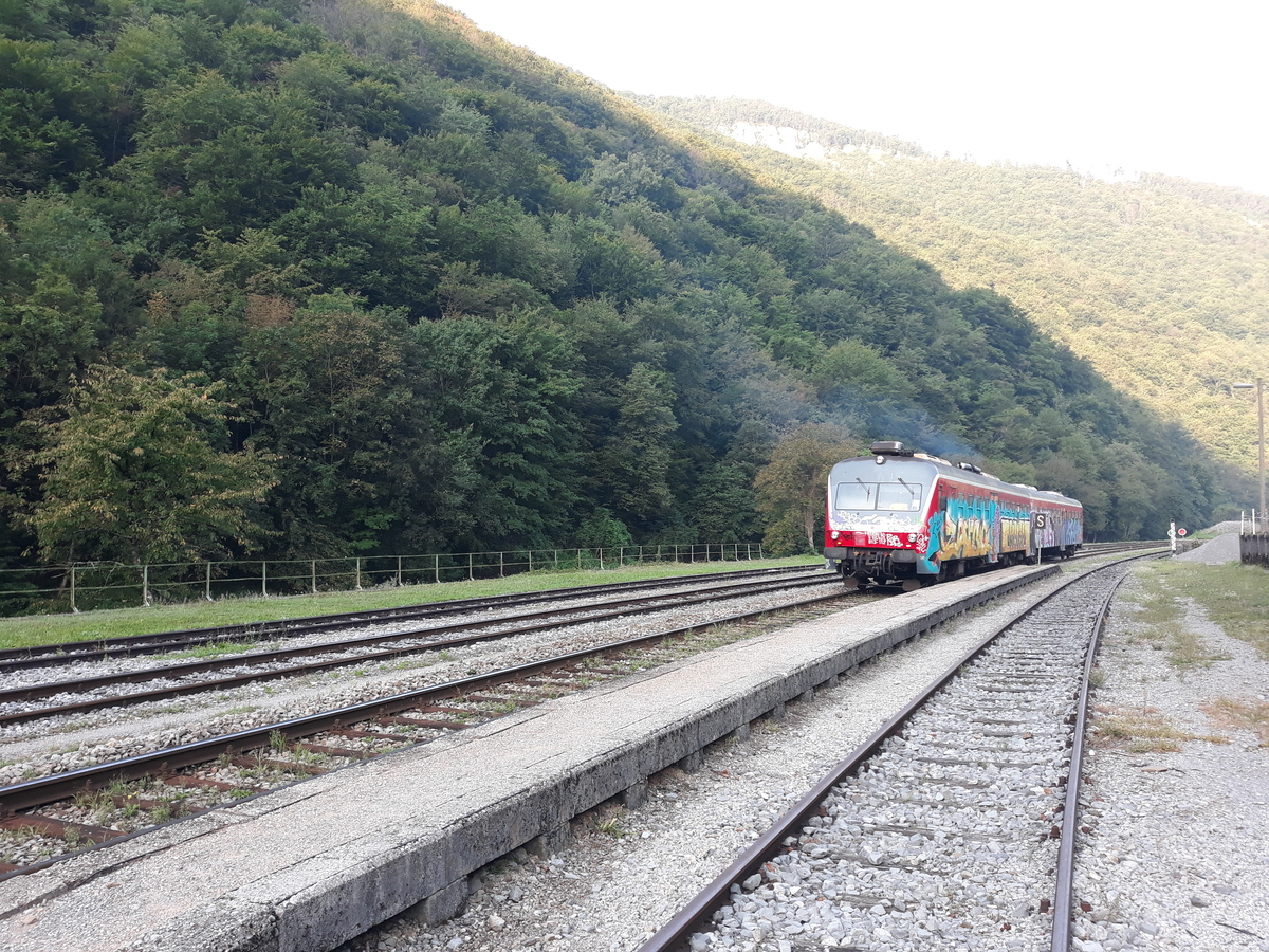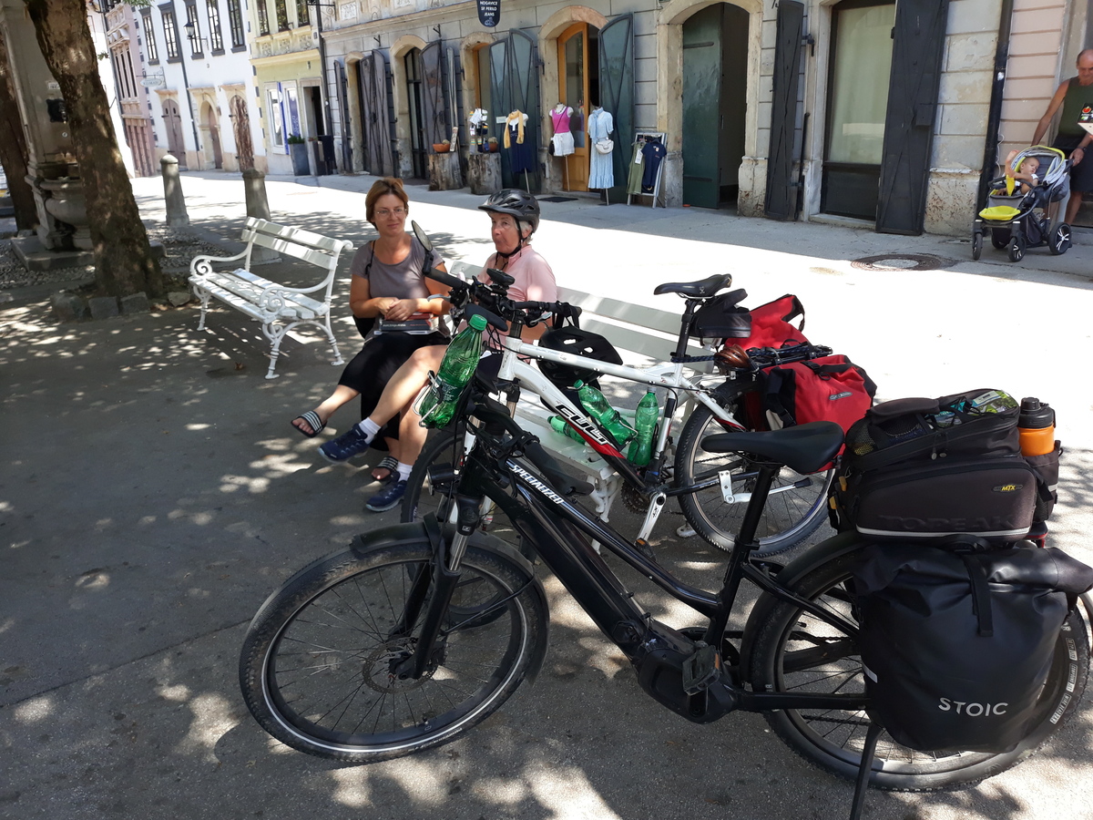 V prenočišču je Darja ugotovila, da je doma pozabila polnilnik za svoje električno kolo. Spomnila sva se današnjega srečanja z Jano, poklicala sina, ki je polnilnik nesel Alešu. In tako sem naslednji dan na železniški postaji Grahovo malo po sedmi uri zjutraj počakal vlak. Ta je imel na srečo zamudo in tako sem se lahko pogovarjal z osebjem in spoznaval železniški sistem iz avstroogrskih časov. Ko je vlak pripeljal mi je Aleš podal polnilnik, Jana pa je mahala skozi okno. Ob zajtrku in še malo kasneje sva nato uspela napolniti baterijo in tura se je lahko nadaljevala.