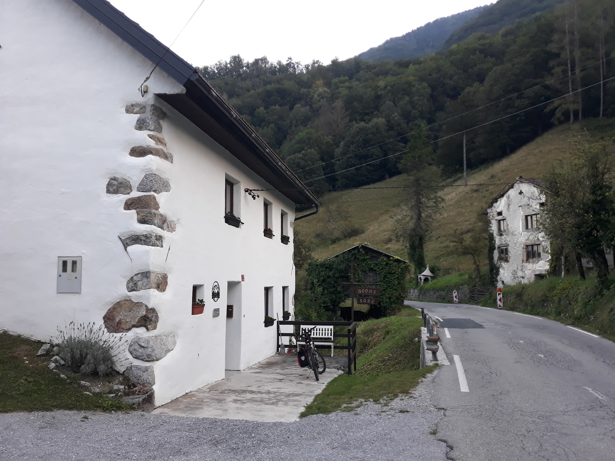 Pot sva nadaljevala do Železnikov in nato zmerno navzgor do Petrovega Brda. Od tam sva se spustila kar po cesti v Baško grapo vse do Brda pri Grahovem. Tu sem namreč rezerviral prenočišče in večerjo v Hiši Brdo. Kot sva kasneje ugotovila je to prenočišče last angleške družine, ki je kupila to hišo pred tremi leti.