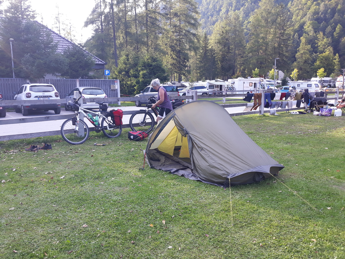 Dopoldne sva po stranskih cestah iz Ljubljane prikolesarila v Kranj, kjer sva si privoščila kratek postanek. Ker je bilo to le par dni pred Marijinim praznikom se nama je zdelo primerno, da naslednji počitek narediva na Brezjah in se hkrati ustrezno priporočiva Mariji. Po ogledu cerkve in malici sva se nato zapeljala do Martuljka. Tam sva postavila šotor v kampu Špik. Čeprav je bil kamp precej poln, je bilo na travniku, rezerviranem samo za šotore, še dovolj prostora.