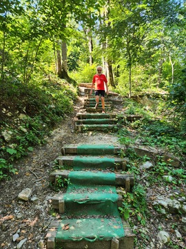 Naslednji dan sva se po cesti spustila do Predmeje in nato malo navzgor do Čibejeve koče v Tihi dolini. Aleš in Jana pa sta pravoverno kolesarila po STKP. Sledil je lep spust po cesti mimo izvira Hublja v Ajdovščino, kjer smo se zopet srečali. Po okrepčilu je sledilo kolesarjenje ob Hublju in nato navzgor po asfaltu mimo Planine ter po lepi STKP bližnjici do Štanjela. Na hitro je Darja pritisnila žig in že sva odkolesarila do železniške postaje. Aleš in Jana sta bila takoj za nama. Uspeli smo ujeti vlak proti Novi Gorici, na njem pa smo izvedeli veselo novico, da tokrat vlak pelje kar do Ljubljane.